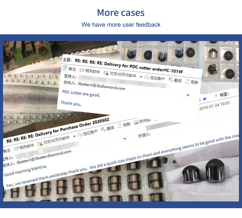 Our products: SMD synthetic diamond, big size synthetic diamond, polycrystalline diamond(PCD), polycrystalline diamond compact(PDC cutter) are widely used for making drilling bit in the field of Oil/Gas field drilling and Geological, Coalfield, Stone processing